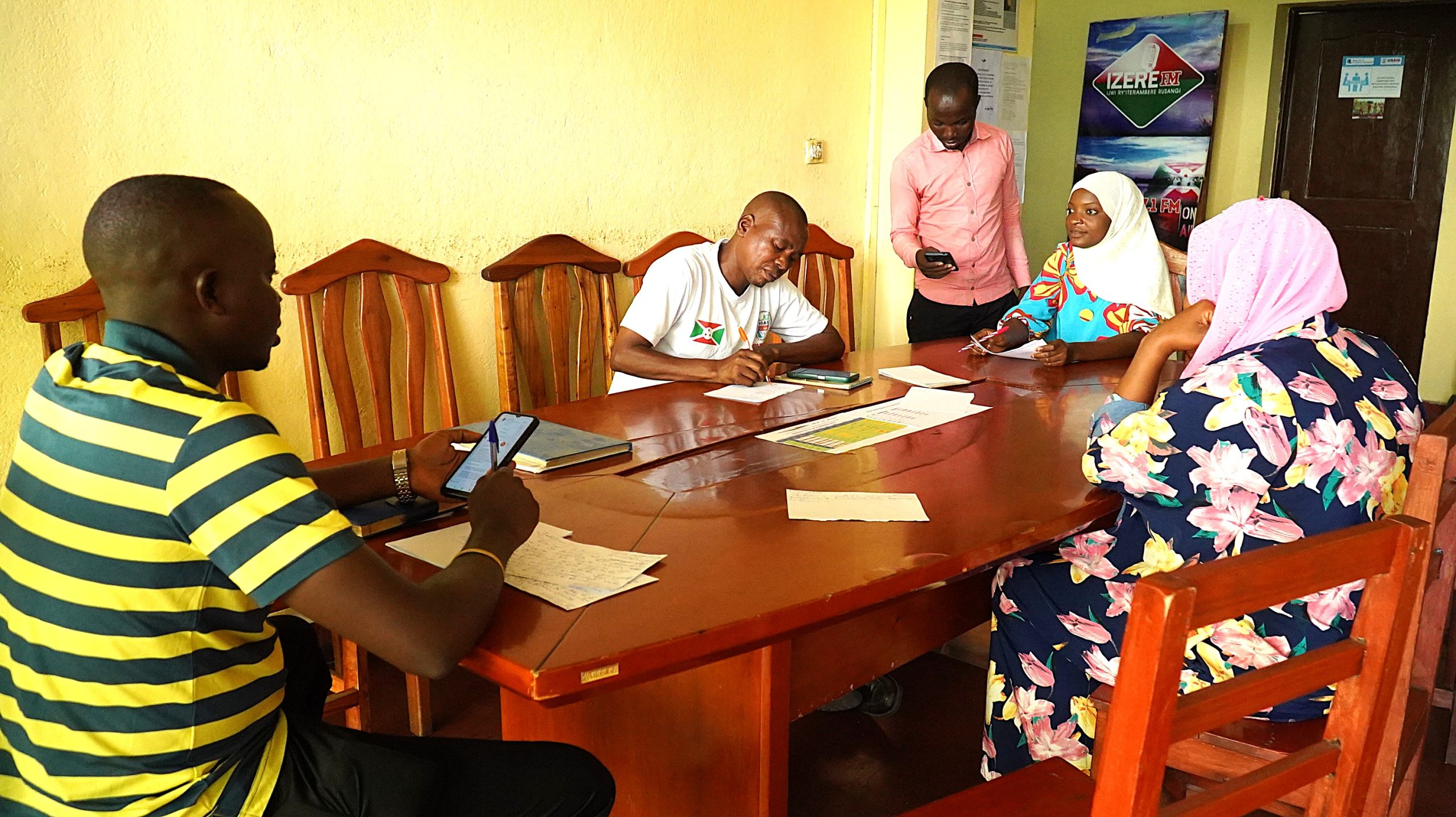 Après une évaluation des besoins de tous ces médias, et particulièrement des besoins prioritaires de la Radio Izere FM, le programme a appuyé : (1) l’installation d’un système solaire complet avec 16 panneaux solaires et 6 batteries fournis par le projet pour un cout de 64 millions et équipement garanti pour 6 ans ce qui dès lors a permis à la radio d’émettre pendant 24h sans interruptions, même sans électricité de la REGISO; (2) un renforcement des capacités techniques et éditoriales, notamment avec deux  journalistes formés comme coaches et qui ont formé et continuent à former leurs pairs, ce qui a renforcé l’innovation interne avec la production de microprogrammes et sketchs éducatifs très appréciés par la communauté ainsi que des visites d’échange avec la radio communautaire Ubuntu pour partager les bonnes pratiques ; (3) un coaching en gestion administrative et financière  , la mise en place de procédures de paiement (caisse, chèque, virement) qui étaient lacunaires, et l’organisation d’un classement hiérarchique des pièces comptables et la planification budgétaire qui n’existait pas ; (4) un renforcement dans la gestion des entreprises de presse qui a fait réfléchir sur l’identification des ressources endogènes favorisant la mobilisation de ressources : grâce au projet, la Radio Izere FM a pu (a) ouvrir un secrétariat public avec un service Lumicash qui fait entrer entre 600 000 à 700 000 BIF/mois ; (b) organiser des projection de matchs de foot grâce à ses moniteurs, ce qui fait rentrer 150 000 BIF par match et 400 000 BIF/mois en moyenne ; (c) innover en cultivant du maïs sur 6 hectares pour assurer une autonomie alimentaire et pérenniser la bonne pratique du projet d’offrir un déjeuner aux staffs et journalistes, et vente du surplus ; et en fin (d) envisager un projet d’imprimerie et de location d’espace pour événements.